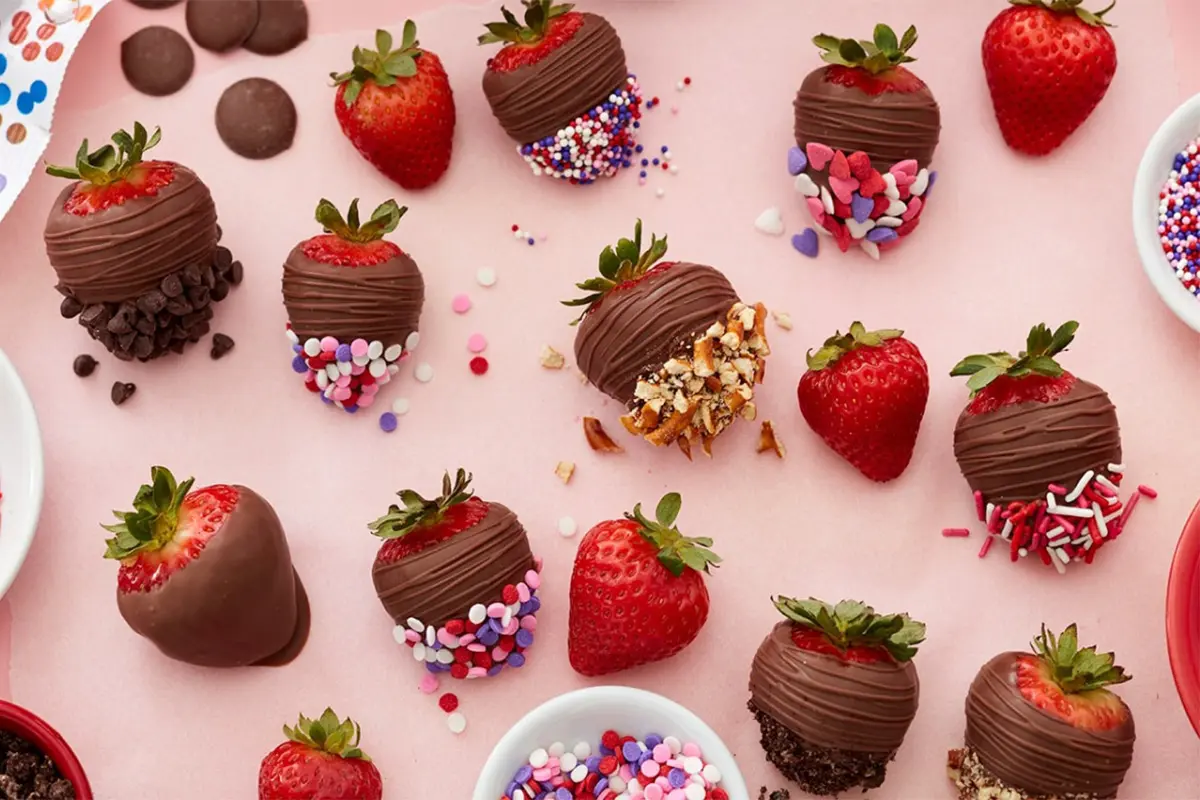 Также вы можете вымыть и просушить свежую клубнику. Растопить любой шоколад, добавив туда капельку растительного масла без вкуса, чтобы получилась шелковистая глазурь. Обмокнуть в шоколад клубнику, нанизанную на шпажку, и отправить готовый букет в холодильник, чтобы шоколад застыл.