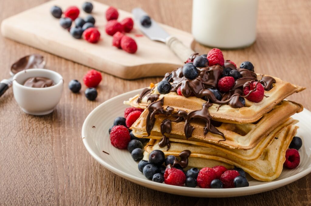 - Подавайте вафли с Nutella, кленовым сиропом или любой другой любимой начинкой.