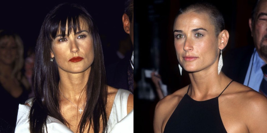 Многие помнят легендарную сцену в «Солдате Джейн», когда героиня Мур без колебаний обривает себе голову, чтобы стать «морским котиком». Утонченная актриса с задумчивым и слегка грустным взглядом со всей решительностью пожертвовала шевелюрой, а спустя два десятилетия ее дочь Таллула Уиллис попросила сделать ей такую же прическу.