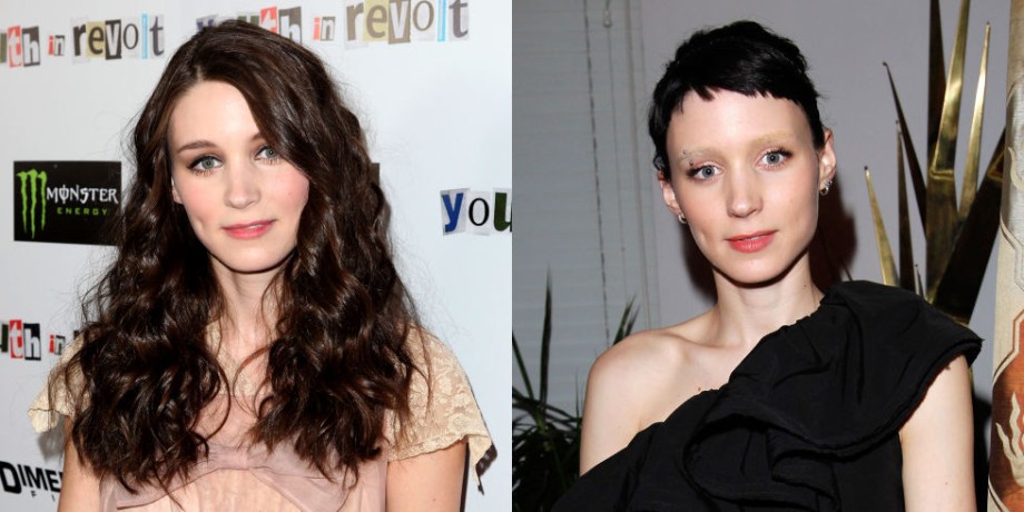 Натуральная брюнетка Руни не только покрасила волосы в насыщенный черный, но и подстриглась в «рваную пикси» для роли в фильме «Девушка с татуировкой дракона».