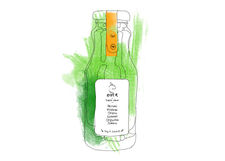 Название молодой компании подчеркивает, что детокс – это не просто питье, это – питание. В Eat It три вида детокс-продуктов: соки холодного отжима, смузи и пюре (более крупный помол, в котором сохранились твердые частички продуктов). Ингредиенты – овощи, фрукты, зелень, пряности, семена чиа, ягоды годжи, порошок спирулины, соевое молоко. Однодневная программа включает 10 продуктов – баночек с пюре либо бутылочек сока или смузи (при желании продукты миксуются между собой).