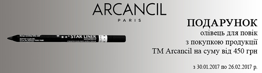 До 26 февраля при покупке продукции Arcancil на сумму от 450 грн вы получите в подарок карандаш для век. Подобные акции также распространяются на ароматы Korkoff и Marina de Bourbon.