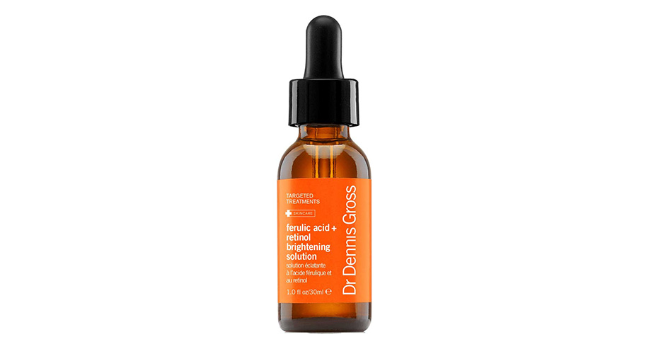 Сыворотка для сияния кожи с феруловой кислотой и ретинолом, Dr Dennis Gross. Антивозрастная сыворотка выравнивает тон кожи, осветляя пигментные пятна и постакне. Sephora.com, $88.