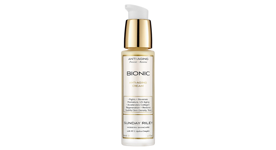 Антивозрастной крем Bionic, Sundey Riley. Настоящий мультитаскер – успокаивает кожу, разглаживает неглубокие морщины, возвращает упругость за счет богатого состава с ресвератролом, витамином А, экстрактом водорослей и биопептидами. Dermstore.com, $125.