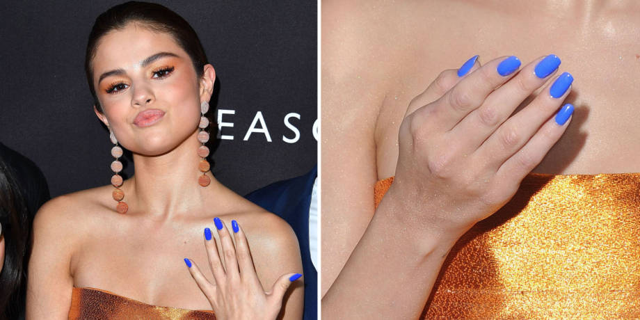 Для выхода на красную дорожку певица выбрала оранжевое платье с металлическим блеском Oscar de la Renta и бархатные босоножки Giuseppe Zanotti. Но настоящей сенсацией стал цвет лака для ногтей. Ее мастер маникюра Томи Бачайк, которая не преминула поделиться в своем инстаграм-аккаунте фотографией рук актрисы, получила сотни вопросов от поклонников Селены о точном названии оттенка. Оказалось, что это лак польского производства, который стоит $ 1,99, а цвет его называется «Бесконечно синий».