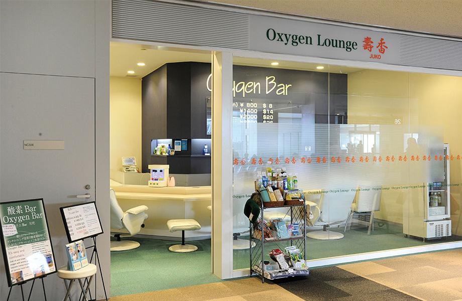 Самым необычным, но от этого не менее популярным, стал спа-центр в международном аэропорту Нарита, Токио, который заботится о красоте изнутри и с помощью средства кислорода. Oxygen Lounge Juko напоминает больше beauty-бар, в котором можно приобрести порцию кислорода разного направленного действия и вкуса: корица — тонизация, лайм — бодрость, ментол — успокоение. Японская философия и подход к красоте гласит о том, что хорошее настроение, состояние умиротворения, правильное дыхание и есть залог долголетия и красоты. Стоит отметить, что сеансы кислородотерапии весьма бюджетные и быстрые beauty-ритуалы, которые может себе позволить каждый второй турист: десятиминутная процедура стоит около $5. В социальных сетях появилась масса поклонников Oxygen Lounge Juko, которые приходят за красивым селфи с яркими трубочками, нежели для серьезной и качественной спа-процедуры. Спа-бар расположен на третьем этаже терминала 1.
