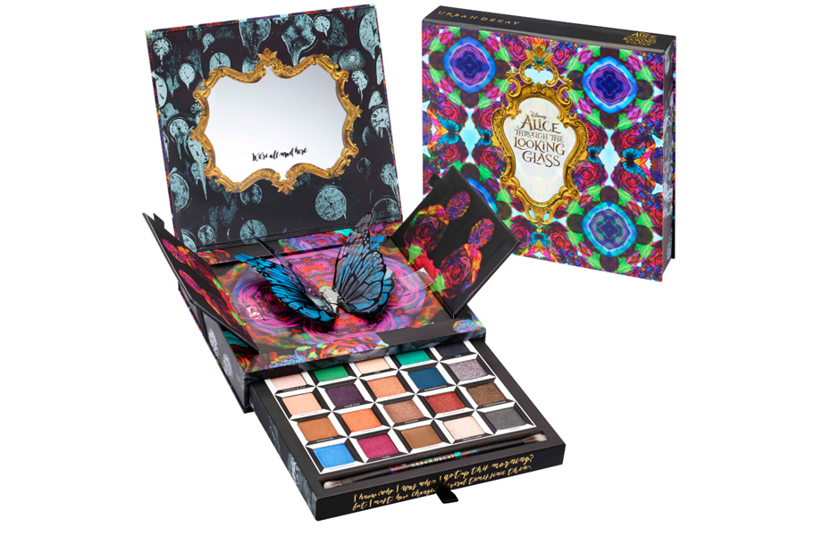 К выходу «Алисы в Зазеркалье» бунтарский бренд Urban Decay в сотрудничестве с Disney выпустил завораживающий набор с 20 психоделическими оттенками теней и помад с соответствующими фильму названиями: «Время», «Безумный шляпник», «Алиса», «Мирана» и «Ирацибета». Лаковый гигант O.P.I тоже поддержал алисоманию коллекцией из 8 оттенков лаков О. P. I Alise Through The Looking Class Brigrs Nail Collection Summer.