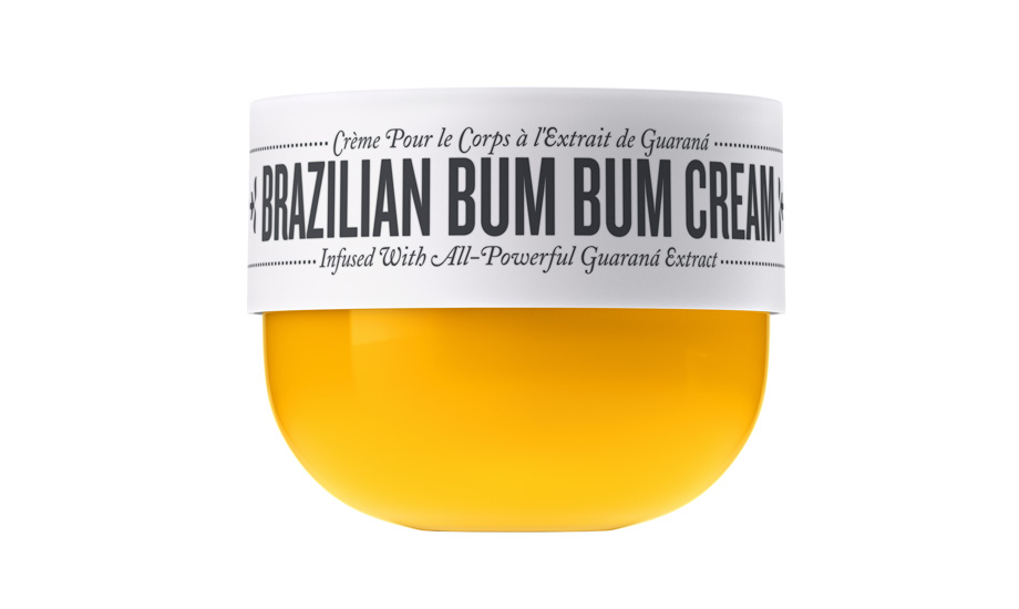 Бразильская марка Sol de Janeiro делает ставку на компоненты из дождевых лесов Амазонии и местный колорит. Один из косметических хитов – крем для попы Brazilian Bum Bum Cream с экстрактом гуараны, кофеином, маслами асаи и купуасу, кокосовым маслом. Он улучшает кровообращение, подтягивает и укрепляет кожу, питает, увлажняет, повышает упругость. Крем приятно пахнет карамелью, быстро впитывается и действует как своеобразный хайлайтер – придает коже легкий блеск. Можно использовать для всего тела.