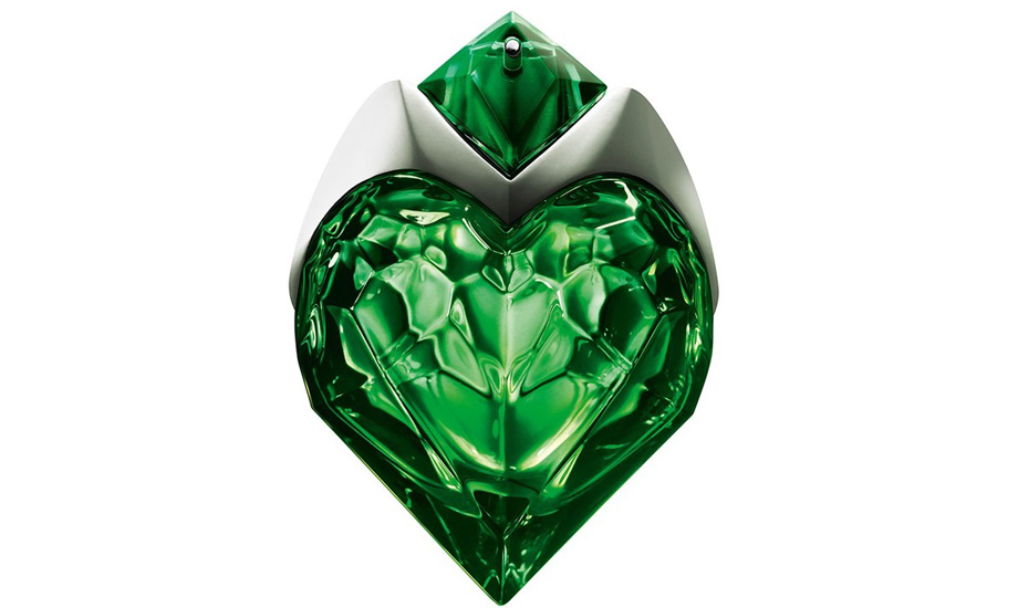 2. Дизайн флакона напоминает магический сердцевидный кристалл зеленого цвета и уже претендует на звание будущего хита бьюти-рубрик глянцевых изданий. Он будет доступен в двух вариантах объема: 50 и 100 мл, а также в более простом многоразовом флаконе с функцией перезаправки.
