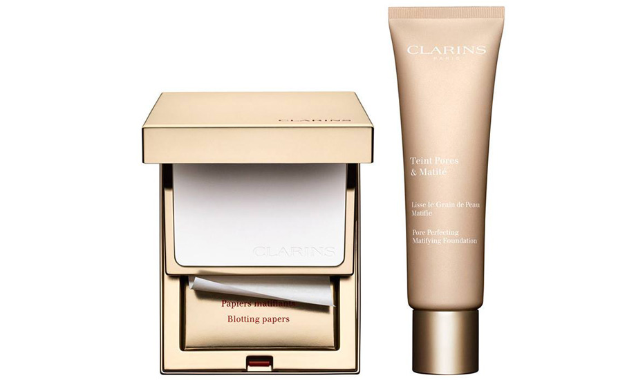 У Clarins – новый дуэт Pores & Matite: легкий тональный крем и компактный набор с матирующими салфетками и прозрачной пудрой. Тон Pore Perfecting Foundation выравнивает цвет лица и ухаживает за кожей. Микроперламутр отражает свет и скрывает недостатки. Красная глина, кремний и железо поглощают избыток кожного сала и убирают жирный блеск. Экстракт органического солероса увлажняет, токоферол защищает от свободных радикалов. Салфетки из набора Pore Perfecting Kit быстро впитывают излишки себума, при этом не высушивают кожу и не портят макияж. Легкая прозрачная пудра с микроперламутром и белой глиной визуально уменьшает поры и убирает жирный блеск, а входящий в состав комплекс из белого чая и бородавника защищает кожу от агрессивного воздействия окружающей среды.