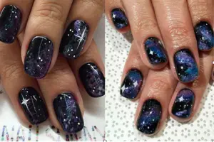 Модный нейл-арт может имитировать вид ночного неба, галактик или звезд – главное, чтобы на ваших ногтях был изображен космический пейзаж.