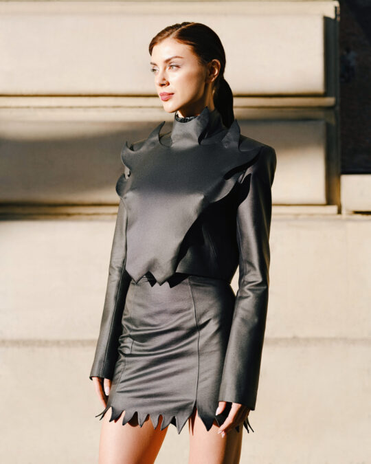«Одежда первой коллекции Fire of Liberty говорит одновременно о прошлом, о нашем настоящем и о нашем будущем. Это то, что нас отличает от россиян: у них нет прошлого, потому что они его украли, нет настоящего, потому что они живут во лжи, параллельной реальности, соответственно, у них нет будущего. Продажа этой коллекции поможет женщинам, пострадавшим от войны, которых будет опекать наш фонд Veteranka foundation, а также пригодится для адаптации военных, возвращающихся в гражданскую жизнь, как я в свое время. В нашем цехе дверь всегда открыта для ветеранов», – комментирует дизайнер, парамедик ВСУ Юлия «Куба».