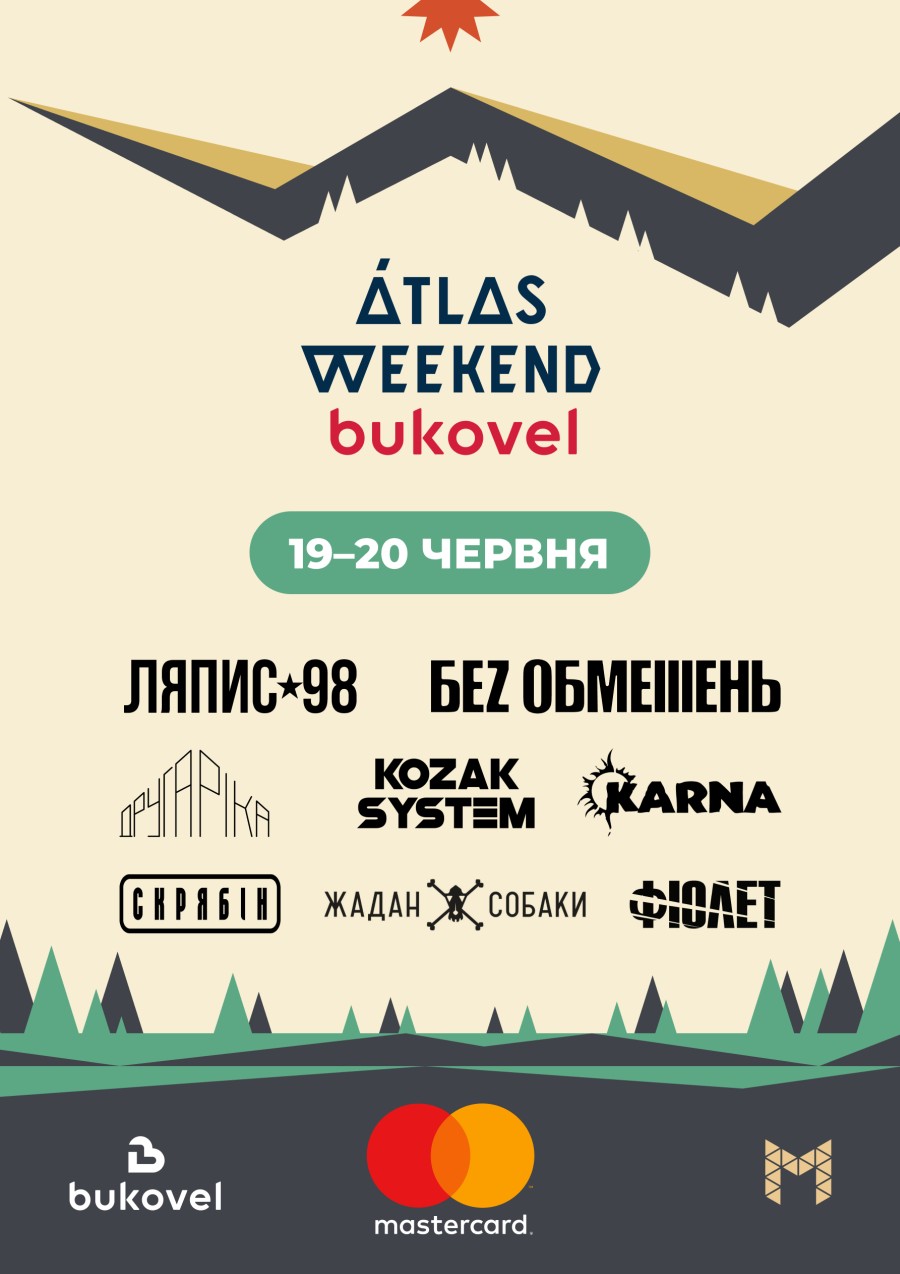 Перший фестиваль Atlas Weekend Bukovel відбудеться вже 19-20 червня. 19 числа на сцені з’являться такі гурти, як “Ляпіс 98”, “Друга ріка”, Kozak System та Karna. Також для гостей співатимуть та розважатимуть публіку “Без Обмежень”, “Жадан та Собаки”, “Скрябін” та “Фіолет”.