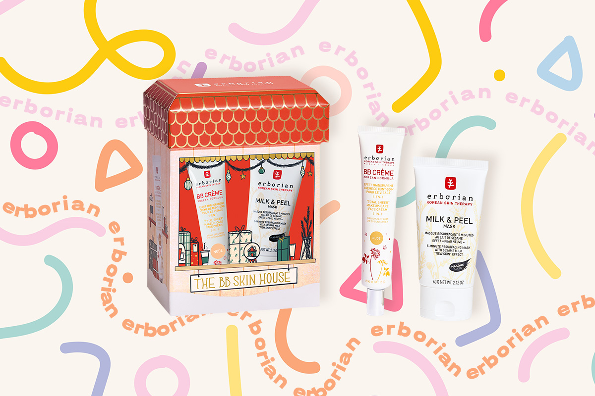 Цього року Erborian представив цілу колекцію лімітованих новорічних наборів для догляду за шкірою обличчя, але редакція Beauty HUB віддала перевагу The BB Skin House, який містить бестселер BB-крем у натурально-бежевому відтінку, 45 мл і новинку – розгладжувальну маску. «Кунжутне молоко», 60 г. Фірмовий ритуал краси з повнорозмірними б’юті-засобами починається з п’ятихвилинної маски для обличчя, яку варто нанести тонким шаром на суху шкіру, уникаючи зони навколо очей і губ. Гіпоалергенна формула містить у складі кунжутне молоко, кунжутну олію, ензими й фірмовий комплекс семи трав, які роблять шкіру чистою та сяйливою. Приховати недосконалості та створити ефект «шкіри немовляти» допоможе багатофункціональний BB-крем, який, крім декоративної функції, також зволожує й захищає від шкідливого впливу УФ-променів, маючи фактор захисту SPF 20. Орієнтовна ціна 1 899 грн.