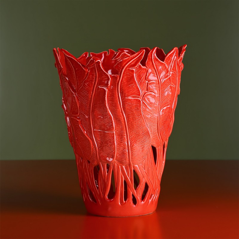 - Підлогові. Сюди належать судини вище 40 см, і вони найчастіше використовуються як самостійний декоративний елемент. Переважно для створення саме таких ваз дизайнери придумують складні форми, хитромудрі оригінальні малюнки. Подібні судини виглядають як твори мистецтва. До свят їх можна доповнювати композиціями із сухоцвітів, гілок, рослин, прикрашаючи різними гірляндами. Вази – це інвестиція в інтер’єр, як скажімо, картина або дизайнерське крісло.