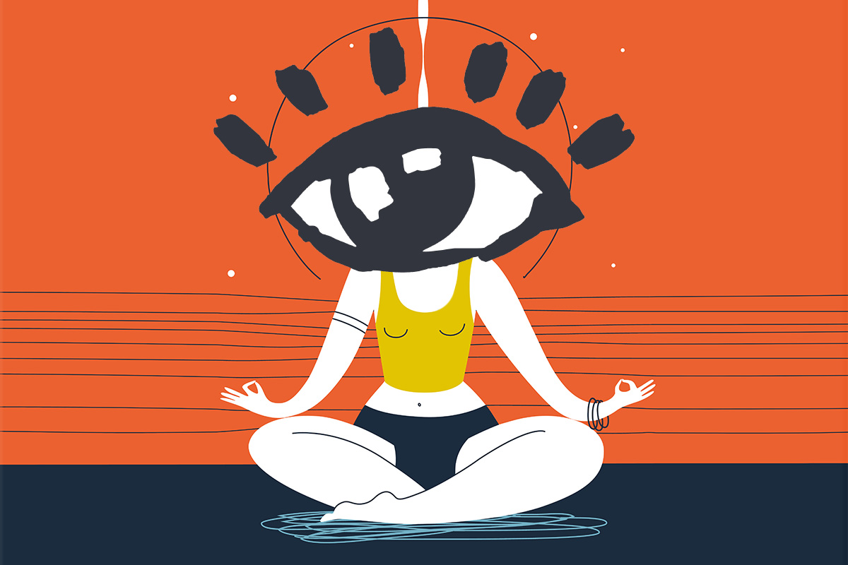 Знайдіть точку або об’єкт далеко від себе і сфокусуйтеся на ньому. Затримайте погляд на кілька хвилин і переведіть його на інший об’єкт на такій само відстані в вашому полі зору. Розгляньте його і рухайтеся далі. Спробуйте оглянути весь простір навколо себе, м’яко переводячи погляд з однієї точки на іншу. Головне, щоб вони перебували приблизно на одній відстані від вас. Після цього закрийте очі та розслабтеся на кілька секунд.