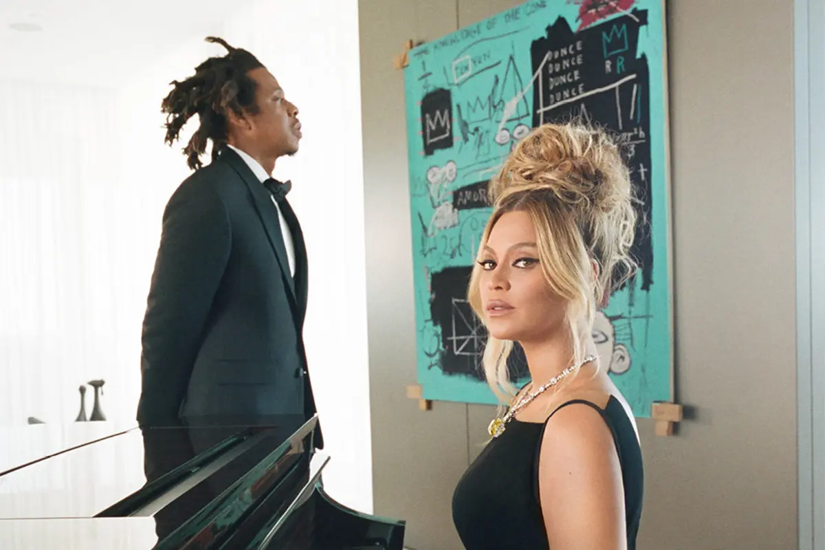У рекламній кампанії Jay-Z з’явився в класичному чорному костюмі, а Beyonce — у стриманій сукні такого ж кольору. Весь акцент її образу було зміщено на прикраси. Точніше одну прикрасу: унікальне кольє з величезним діамантом, розміром 128,54 карата. Камінь добули в Південній Африці у 1877 році і через рік його придбав засновник Tiffany & Co. Чарльз Льюїс Тіффані. За майже 150 років унікальний камінь вигулювали лічені рази: Мері Уайтхаус, Одрі Хепберн і Леді Гага. Тепер до списку долучилася Beyonce.