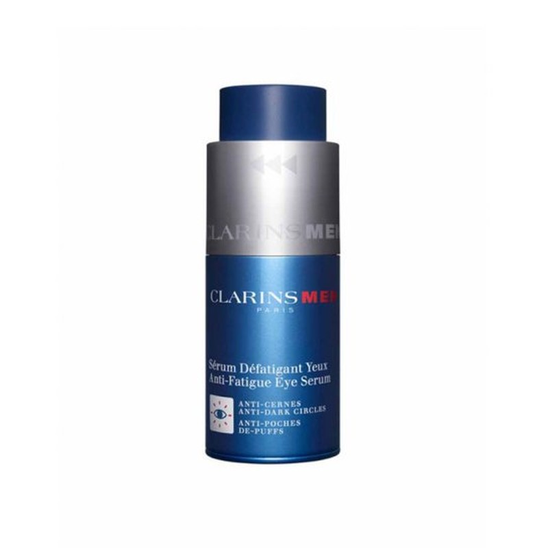 Сироватка від зморшок, набряків і темних кіл навколо очей Clarins Men Anti-Fatigue Eye Serum заряджає шкіру енергією та зупиняє процес старіння шкіри. Після регулярного використання сироватки погляд знову засяє молодістю і свіжістю, адже засіб розгладжує мімічні зморшки навколо очей, інтенсивно зволожує шкіру та утримує в клітинах необхідну вологу. Завдяки живильним компонентам також покращує відтінок та тонус епідермісу, що забезпечує anti-age ефект. Об’єм продукту 20 мл, орієнтовна вартість 1 250 грн.