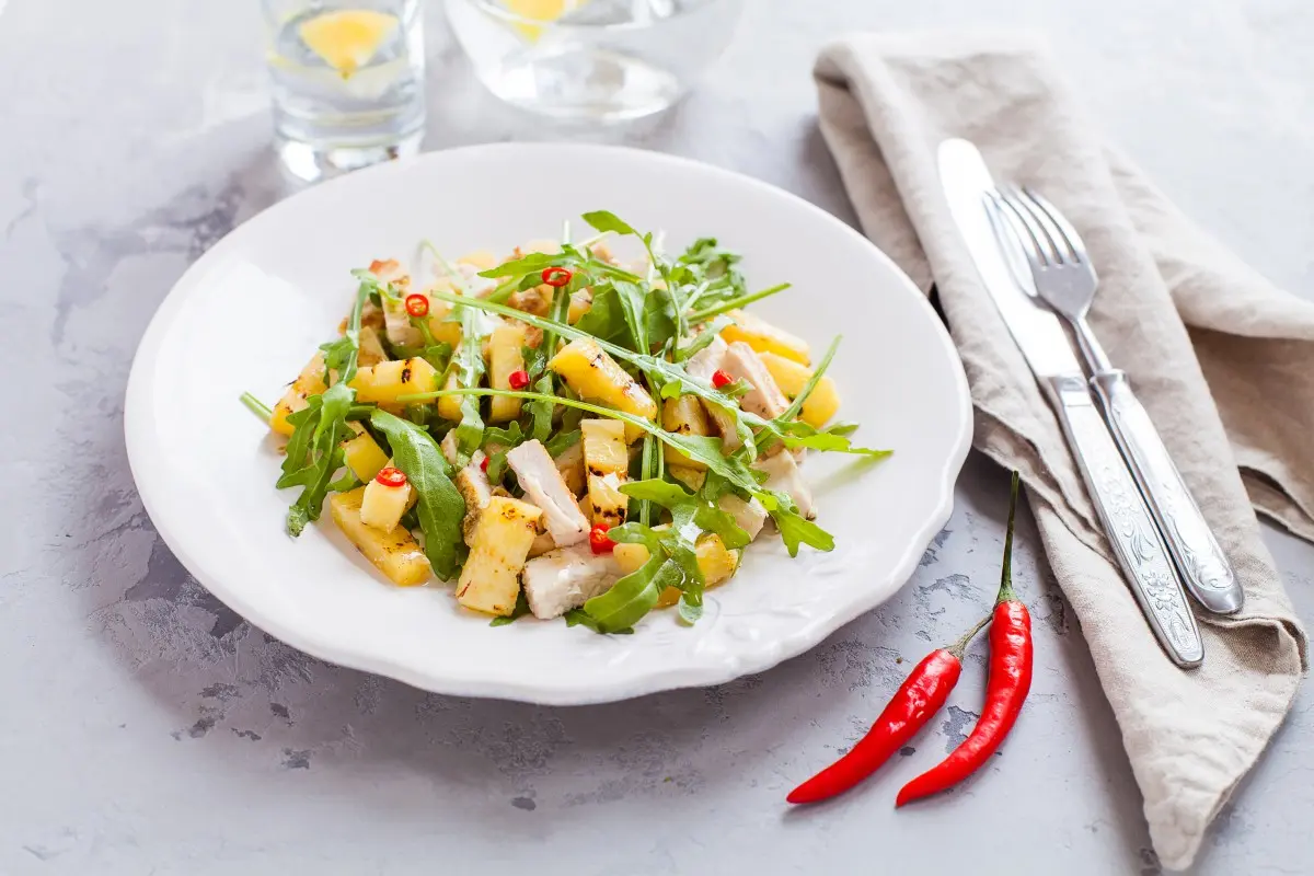 Салати з ананасом не просто дуже смачні, а й мега корисні. А все тому, що фрукт має масу вітамінів та корисних речовин.