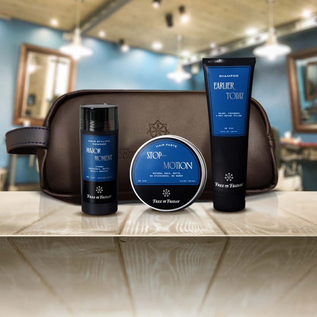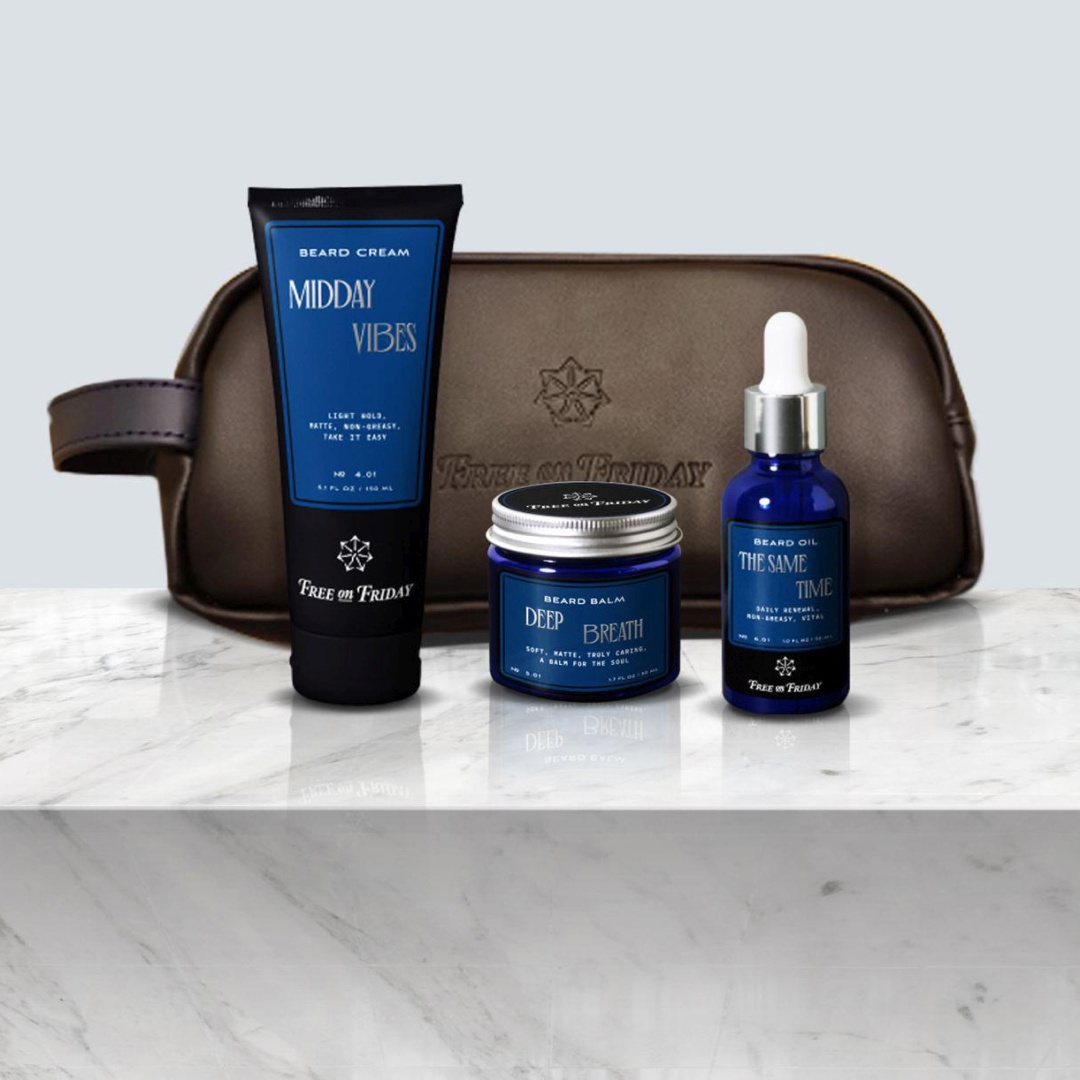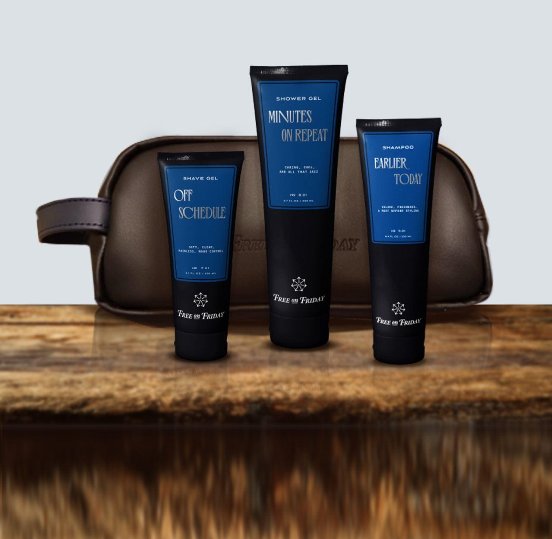 Бренд Free on Friday пропонує три подарункові комплекти чоловічої косметики, представлені в стильних шкіряних несесерах. «Базовий набір» включає гель для гоління з екстрактом солодкої м’яти та ментолом, шампунь-кондиціонер на основі органічних компонентів, який робить волосся слухняним, а також гель для душу. Тим, хто приділяє особливу увагу зачісці, сподобається набір Time To Fortify, у якому, крім шампуню-кондиціонера, міститься проста у використанні паста для укладки й пудра для стайлінгу — засіб, який найшвидше впорядкує волосся й забезпечить йому матовий фініш. Free on Friday подбали також про бородатих чоловіків, спеціально для них бренд розробив набір Time To Act. До нього входить крем, бальзам та олійка, які подарують бороді глибоке живлення та ідеальний зовнішний вигляд.