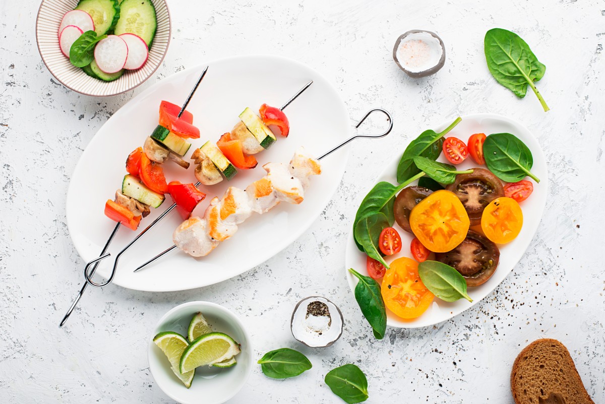 Овочеве рагу, знежирений йогурт і зелений чай.
