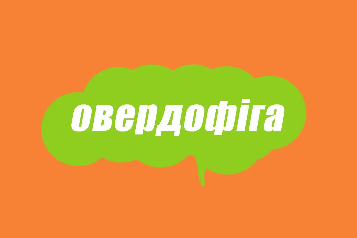 Овердофіга – дуже багато, відчутно, неміряно, повним-повнісінько. Походить від злиття двох слів: англійського over (понад, більше) і сленгового виразу «дофіга». Останнє мовою молоді означає «багато», а приставка «овер» робить кількість чого б то ні було більше ще в кілька разів. Тобто овердофіга – це занадто багато.