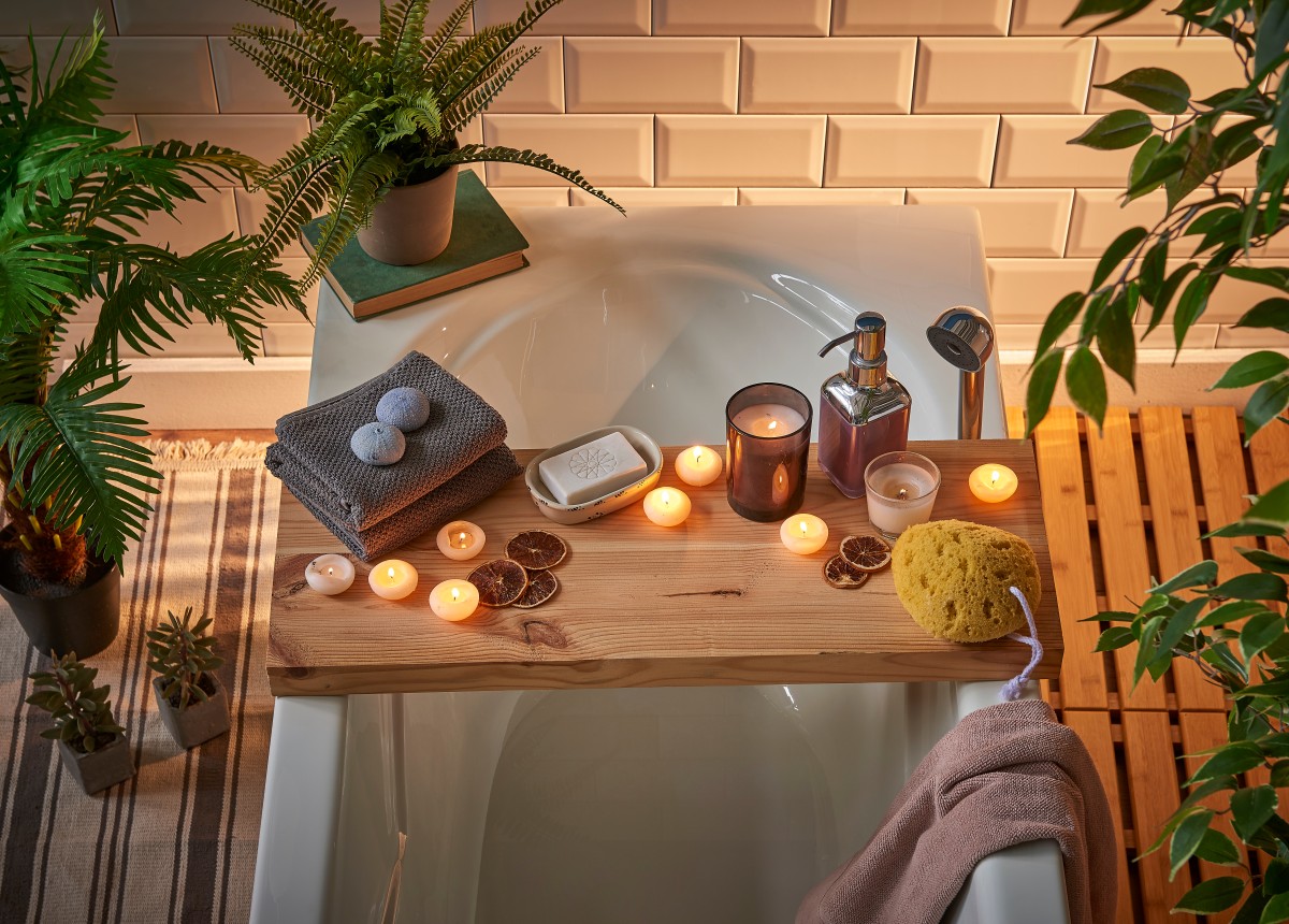 Розслаблювальна ванна – не менш важливий крок у створенні домашнього спа-салону. Ми вже розповідали про кілька способів, які розбавлять ваші водні процедури, і, здається, зараз найкращий час їх спробувати. Запасіться декількома засобами для ароматної ванни, використовуйте морську або англійську сіль, пелюстки квітів, ефірні олії або приготуйте різнобарвні бомбочки своїми руками. Власне, всі ці дії не лише заспокоять і подарують розслаблювальний ефект, але й позитивно позначаться на стані вашої шкіри.