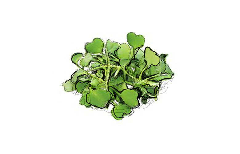 Мізуна: листова японська гірчиця. Пряні паростки повні смаку й аромату. Допомагають регулювати водний обмін в організмі, очищати стінки судин від бляшок.