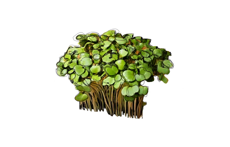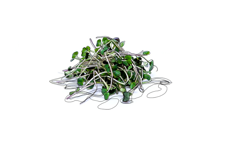 Гірчиця: паростки гострі й пряні на смак. Ця мікрозелень багата на вітаміни С і Р, попереджає старіння стінок кровоносних судин, стимулює апетит і кровообіг. Прекрасно доповнює страви з м’яса й риби, піддається легкій термічній обробці.