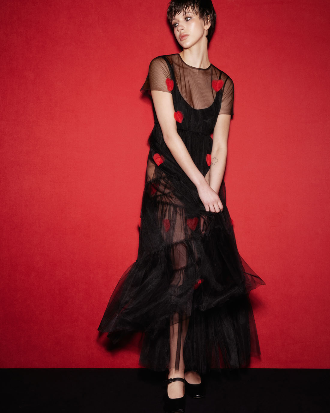 «Обʼємне серце, яке ви зараз бачите у відео-кампейні, було створено за допомогою новітньої компʼютерної графіки. В реальності це флагманська модель Love collection, виготовлена з 48 шарів фатину», – говорить Анна Шаш.