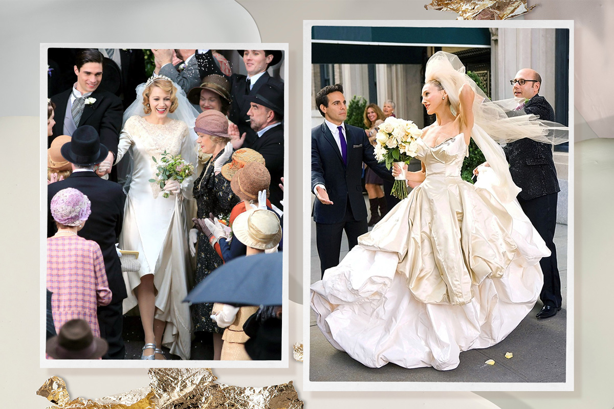 Серіал про життя еліти Манхеттену – джерело розкішних вбрань, і весільних в тому числі. За шість сезонів ми побачили чимало вінчальних луків, зокрема, найбільш впізнавані належать героїні Блер Уолдорф (Лейтон Містер), яка приміряла за сюжетом два кардинально різні вбрання від Vera Wang і Elie Saab. А ось Серені ван дер Вудсен, яку зіграла Блейк Лайвлі, пощастило вийти заміж лише одного разу. Саме її вінчальна сукня у нас в фаворитах. Класична біла пухнаста сукня без бретелей була б звичною, якби не вставки з золотої фольги. Авангардний лук від Georges Hobeika зчинив фурор у шанувальників підліткової драми!