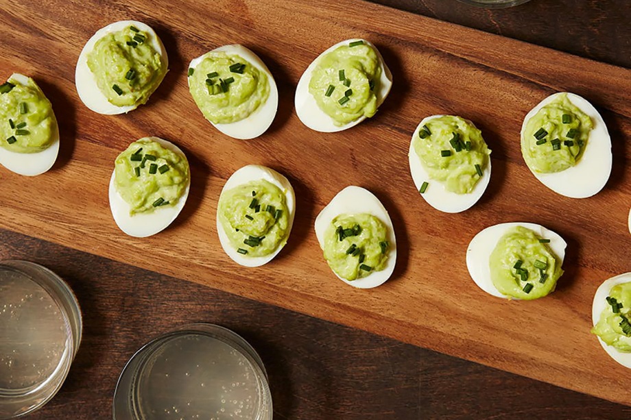 Приготовление. Отварите яйца вкрутую, очистите от скорлупы, разрежьте пополам и разделите белки и желтки. Желтки переложите в отдельную миску, добавьте туда лимонный сок, мякоть авокадо, йогурт или майонез и острый соус. Перемешайте до однородности (можно воспользоваться блендером), посолите и поперчите по вкусу и выложите обратно в половинки белков.