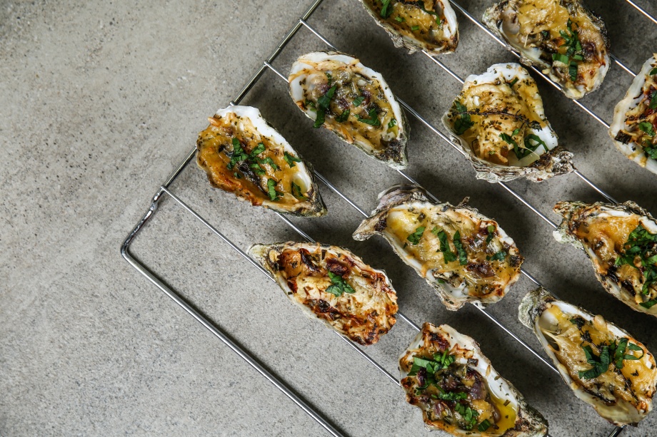 Приготовление. Взбейте блендером сливочное масло, бурбон, мед, чеснок и консервированный перец до однородной массы. Разогрейте гриль или электрическую духовку, раскройте устрицы, выложите на каждую острое масло и отправьте под гриль буквально на три минуты или до тех пор, пока масло не закипит и не приобретет золотистый оттенок.