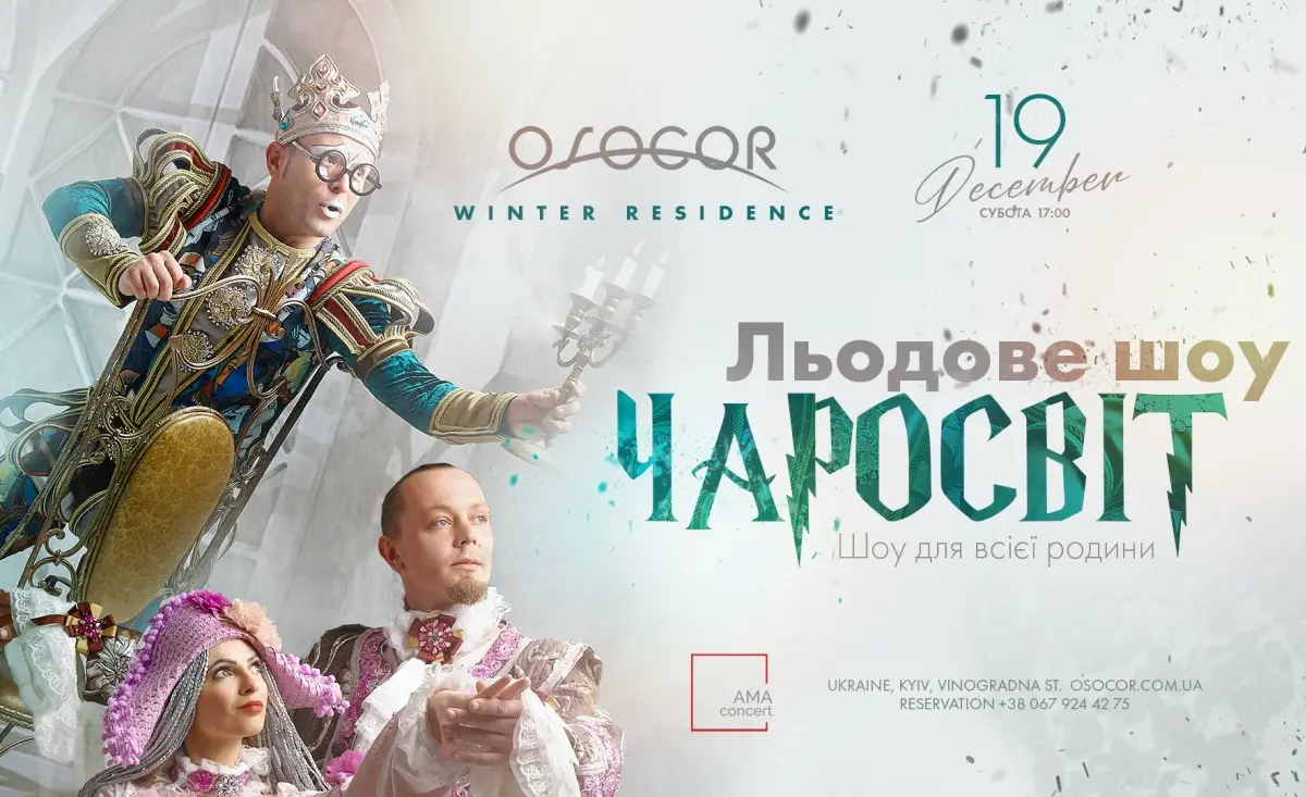 С 19 декабря каток Osocor Residence станет сценой для единственного на территории Украины цирка на льду Saveliev Grand. С его участием здесь развернется сказочно-магическое театрализованное шоу под названием «Чаросвит», которое можно будет увидеть 19, 24, 25, 26, 27, 28, 29 и 30 декабря и 1, 2, 3 и 7 января в 17:00.