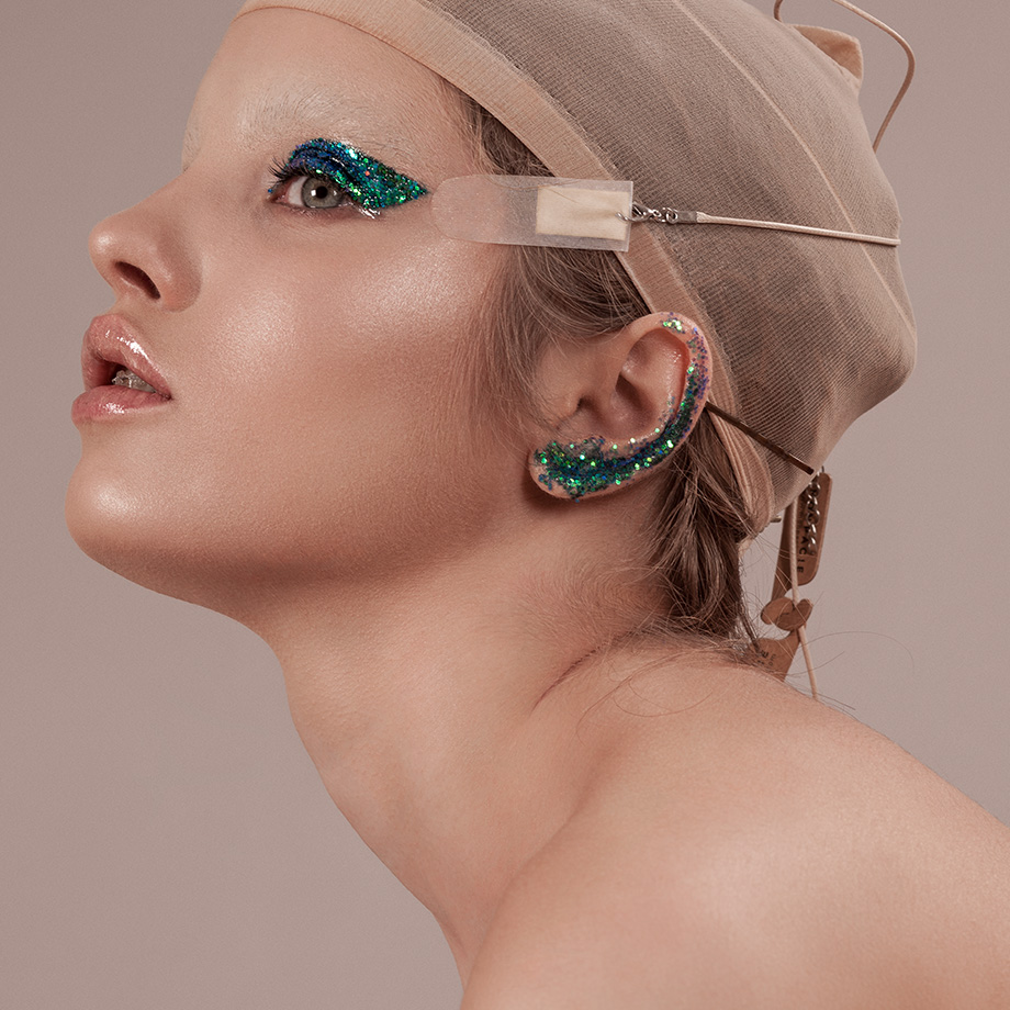 5. И наконец глиттер! Порой кажется, что дрэг-квинс в нем купаются, спят и делают из него маски. Сейчас очень актуальны голографические цвета и оттенки-хамелеоны, более продуманным макияж можно сделать, заключив блестки в геометрические формы, либо наносить их на неожиданные места, например, уши. Этот прием пригодится, если вы никак не можете подобрать аксессуары к образу.