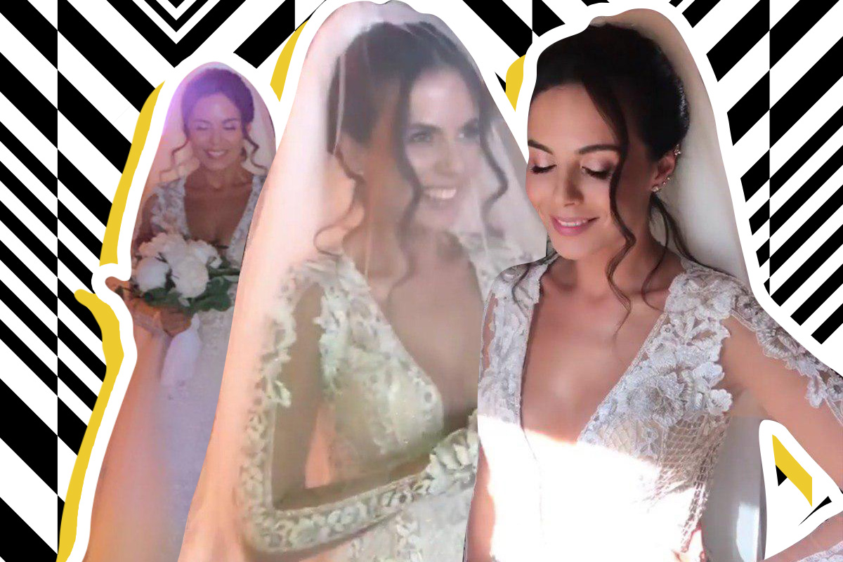 Для церемонии, которая прошла 23 мая, невеста выбрала свадебное платье фасона «русалка» израильского бренда Galia Lahav. Наряд, созданный из тончайшего кружева и завораживающей красоты вышивки, красиво подчеркивал фигуру певицы. Но наше внимание привлекло не только платье — свадебный макияж и прическа Насти Каменских были безупречными. Меган Маркл бы точно оценила укладку певицы.