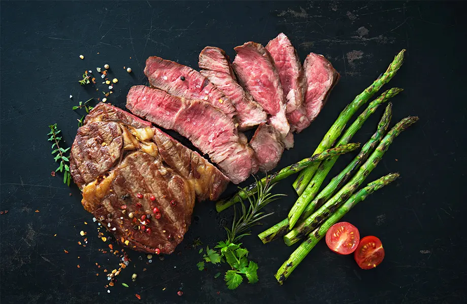 Разогреваете сковороду-гриль на сильном огне и обжариваете мясо со всех сторон до желаемой степени готовности. Для средней обжарки достаточно 5–7 минут для каждой стороны.