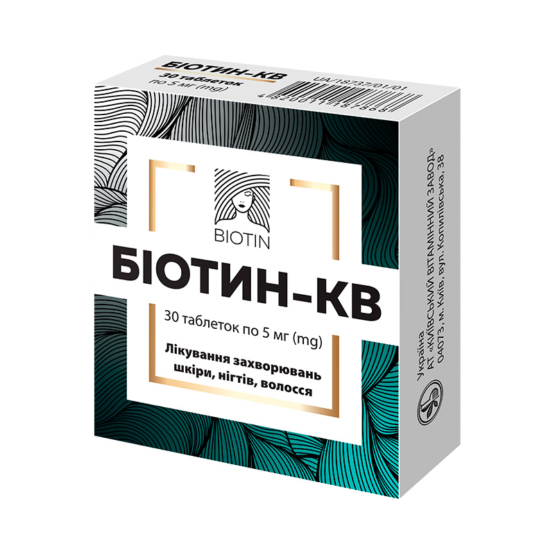 Неправильный баланс витаминов и минералов в организме – одна из ключевых причин ухудшения состояния волос. Чтобы восстановить пряди, важно убедиться, что в организм поступает достаточное количество всех необходимых микроэлементов. В частности, по-настоящему бесценным для всех, кто мечтает о естественной густоте и красоте волос является биотин – он же витамин В7. Исследования показывают, что увеличение потребления биотина может улучшить общее качество волос, включая густоту и блеск. «Витамин красоты» насыщает волосяные луковицы серой, которая нормализует работу сальных желез, обеспечивает эластичность и шелковистость локонам, а также эффективно борется с себореей. Кроме этого, дополнительный прием биотина приводит к остановке выпадения волос. В качестве бонуса, биотин улучшит состояние кожи и укрепит ногти. Отечественный производитель «Киевский Витаминный Завод» производит «Биотин-КВ» в оптимально эффективной дозировке – 5 мг в 1 таблетке, а в производстве используется субстанция из Франции.