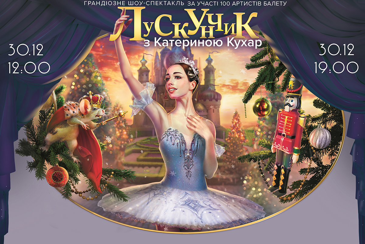 В основе новогоднего шоу – балет вне времени П. И. Чайковского под названием «Щелкунчик», который уже более столетия любит не одно поколение детей и взрослых в разных странах мира. На главных позициях выступят премьеры Национальной оперы и известная балетная пара Украины – Александр Стоянов в роли мышиного короля и Екатерина Кухар в роли Мари. Образы других героев на себя примерят известные артисты, имена которых пока держатся в секрете.
