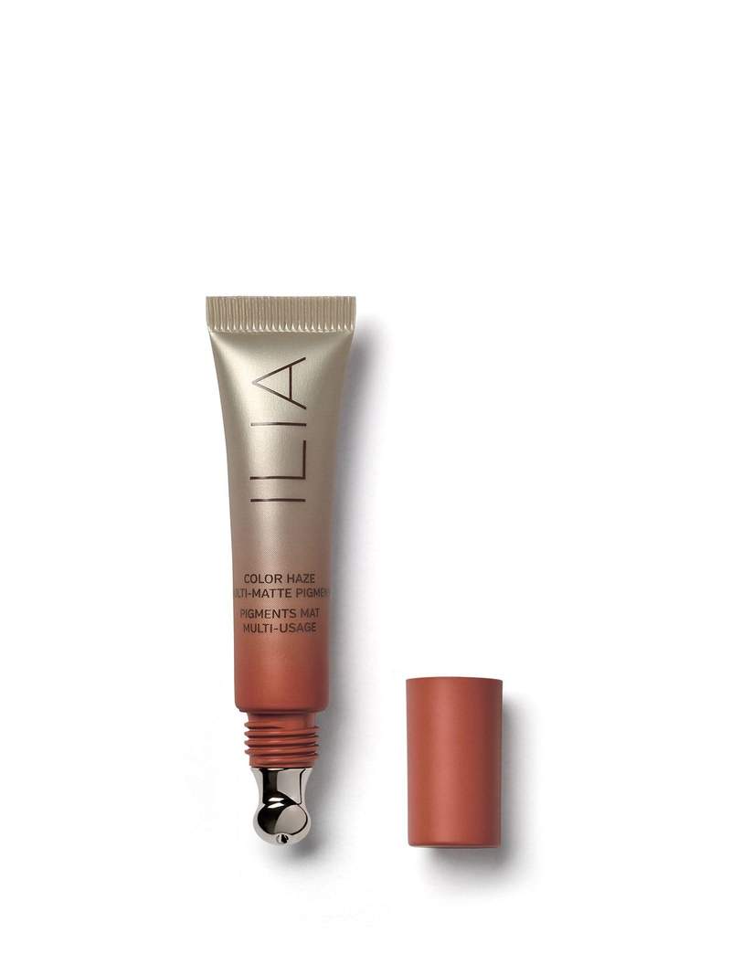 - На яблочки щек визажист нанесла розовые кремовые румяна ILIA Color Haze Multi-Use Pigment (оттенок Before Today), растушевав их к верхним точкам скул. Этот трюк дает моментальный лифтинг эффект, правда, только визуально.