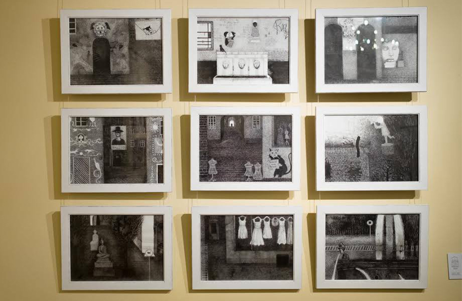 Это выставка-лабиринт, выставка-квест, выставка-головоломка. Символические работы Илоны с фигурами женщин, ангелов, сфинксов, с деревьями, из которых выходят люди, и настроениями, обозначенными скупыми красками, экспрессивной штриховкой, были бы уместны в книгах Умберто Эко. Но у них есть не только «книжные темы», говорит художница. Реальность прорывается в ее вымышленный город баррикадой на углу улиц Городецкого и Крещатика: «Когда я ее увидела, сразу поняла, что это баррикада из моего города, на ней революционные надписи и один очень поэтический женский портрет. Я просто по-своему огранила эту реальность и вписала ее в свой мир. В проекте «Внутренний город» я рисовала такой город-лабиринт — средневековый, европейский, на этих рисунках не было людей, но они там живут, и тогда я подумала, что они должны обмениваться какими-то знаками, и эти рисунки, маскароны, граффити, вывески – их послание друг другу».